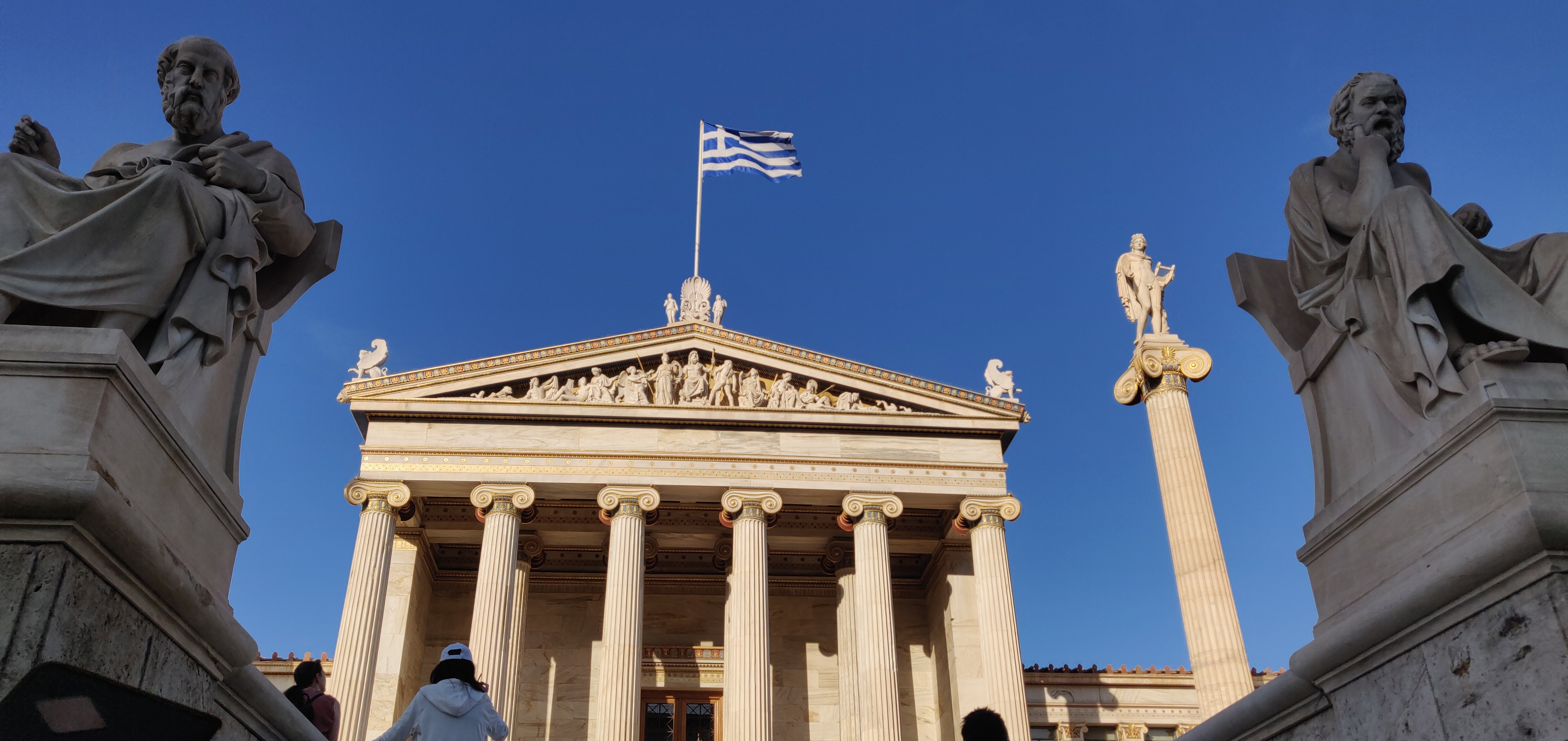We visited the Academy of Athens, which is the modern version of the Platonic Academy, where Plato and Aristotle studied over 2000 years ago.